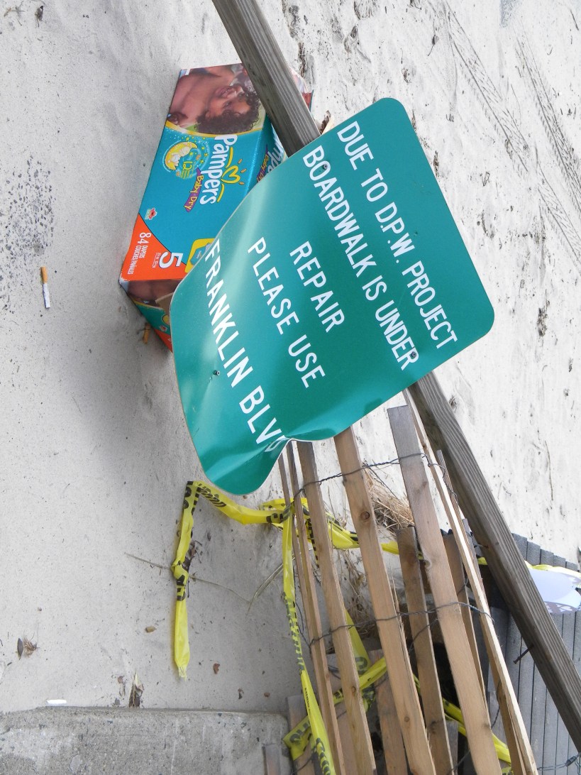 A mangled municipal sign near the boardwalk in Long Beach. A mangled municipal sign near the boardwalk in Long Beach.