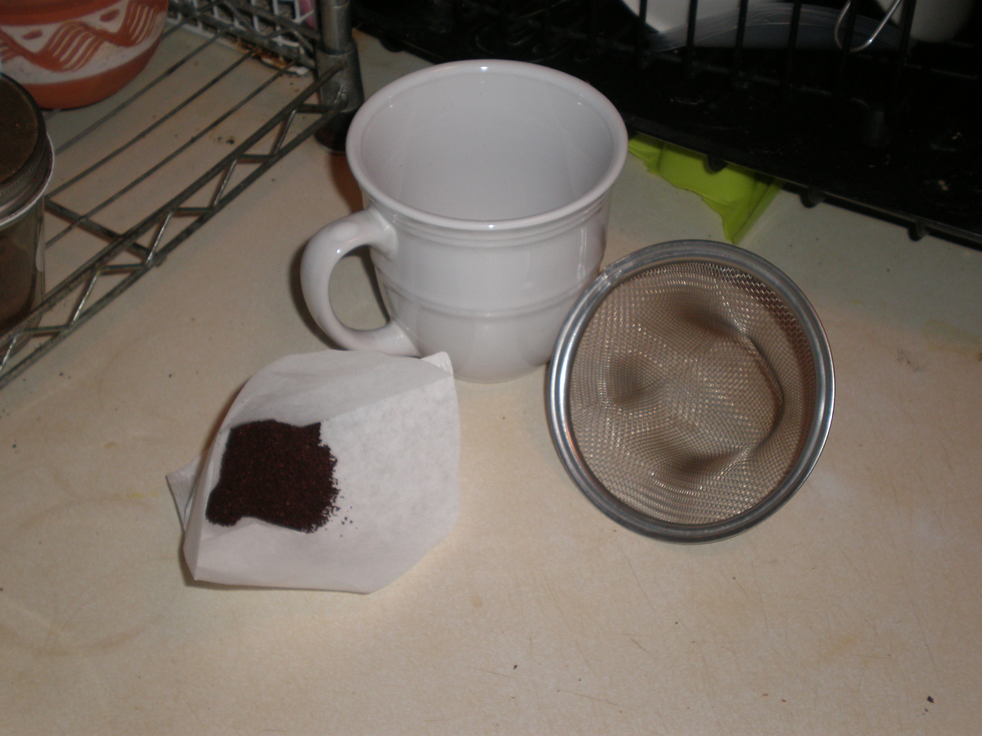 The components for the makeshift coffee dripper.